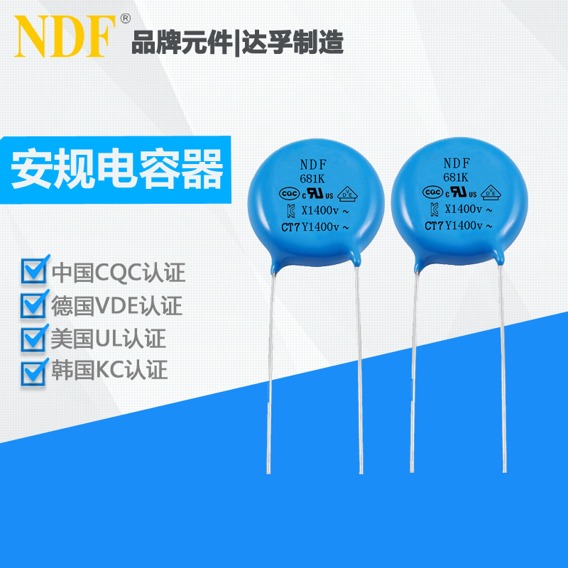 | Y1-681K-Y5U | φ7.5mm | T4.5mm | F10mm | L3-22mm | 400V[**]C | 680pF | Y5U | ±10% |