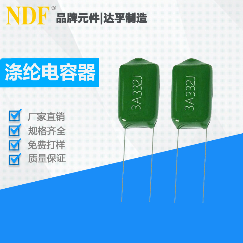 滌綸電容器3A332J(1000V)是指用兩片金屬箔做電極,夾在極薄絕緣介質(zhì)中,卷成圓柱形或者扁柱形芯子,介質(zhì)是滌綸,滌綸薄膜電容,介電常數(shù)較高,體積小,容量大,穩(wěn)定性較好,適宜做旁路電容使用。
